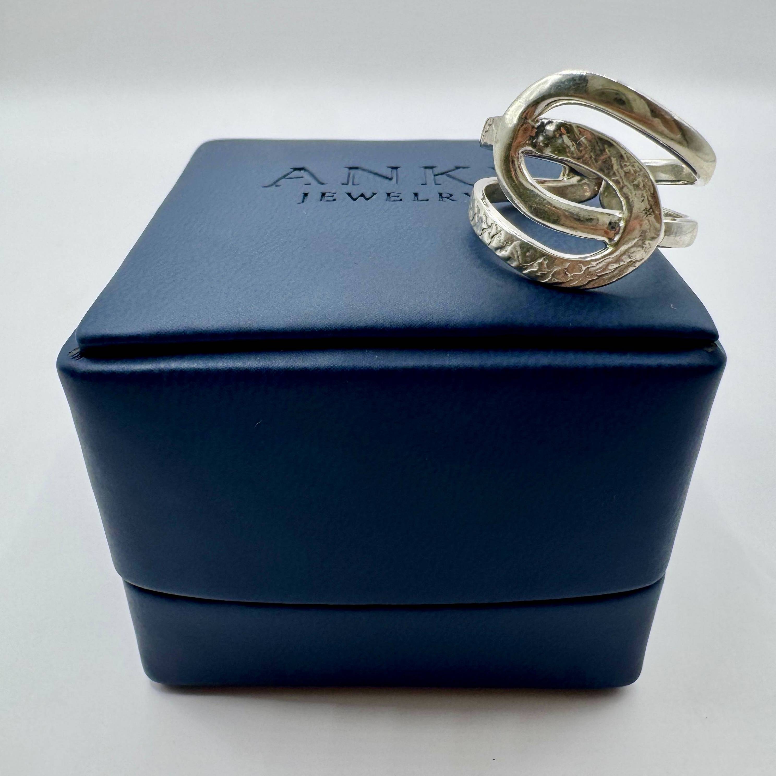 Anillo en plata 950 con líneas entrelazadas que simbolizan unión y continuidad. Una pieza atemporal y sofisticada.