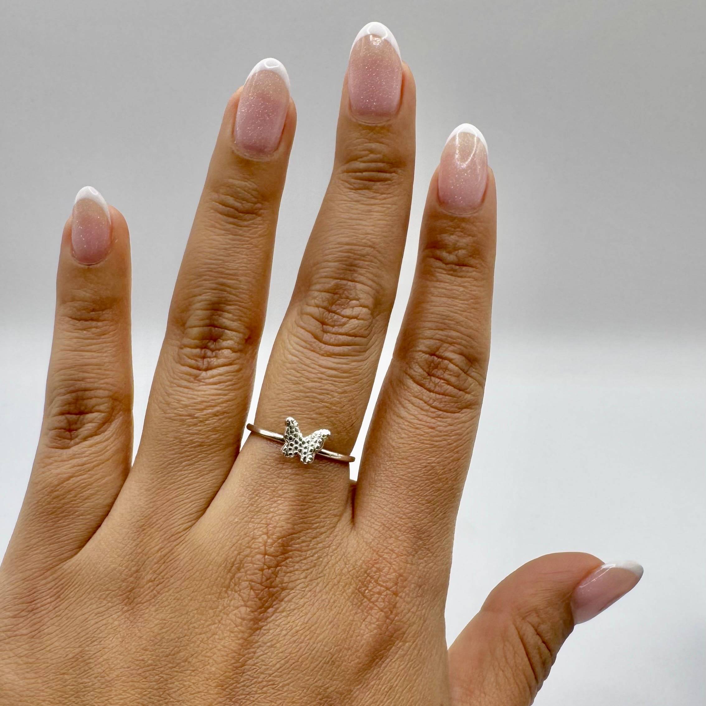 Anillo en Plata 925 con mariposa en relieve y acabado brillante.
