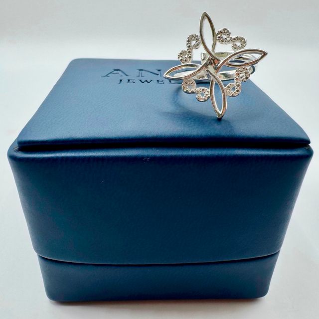 Anillo de plata 950 con símbolo del nudo infinito, asociado a protección y continuidad. Elegancia discreta con profundo significado.