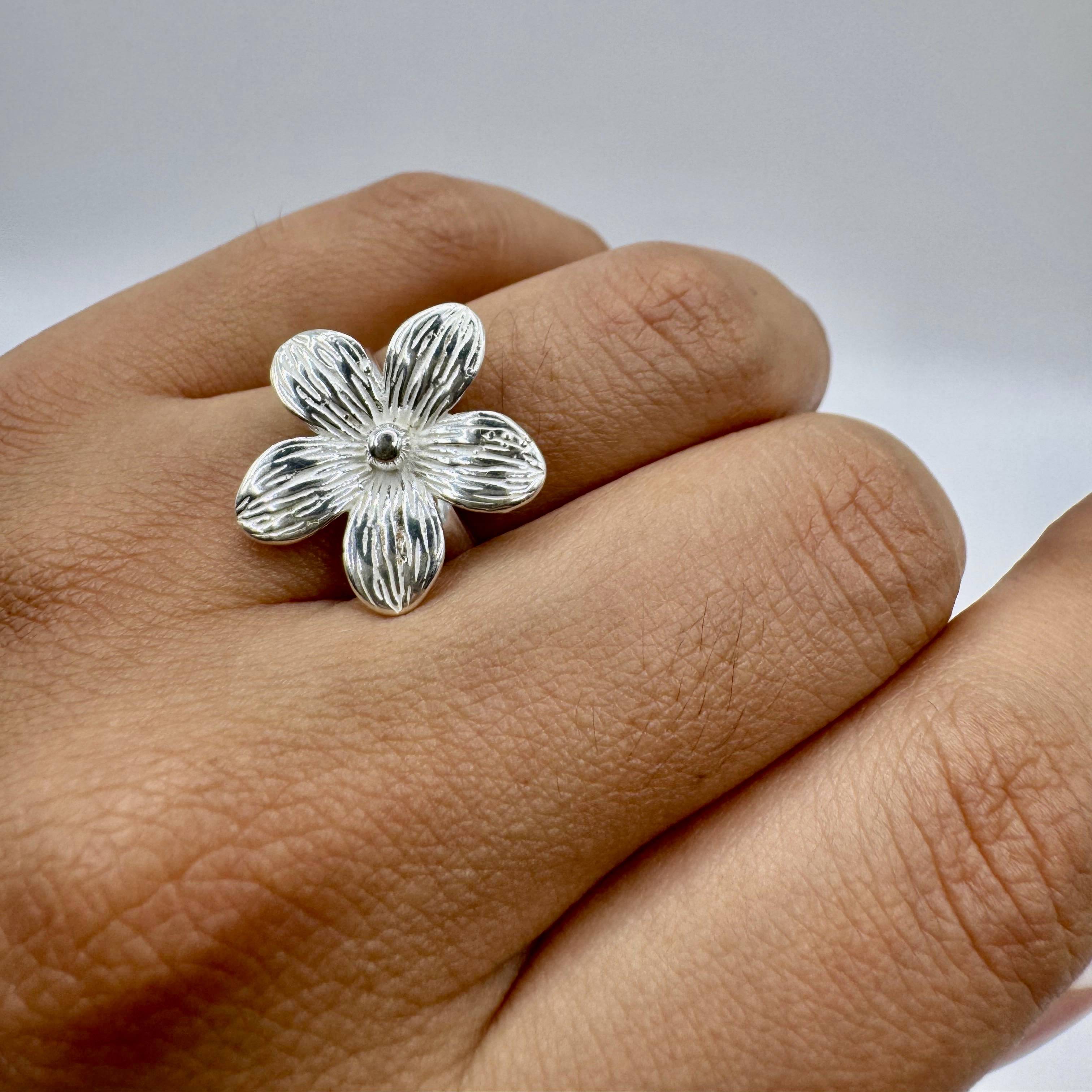 Plata 950. Anillo con diseño de flor. Detalle fino.