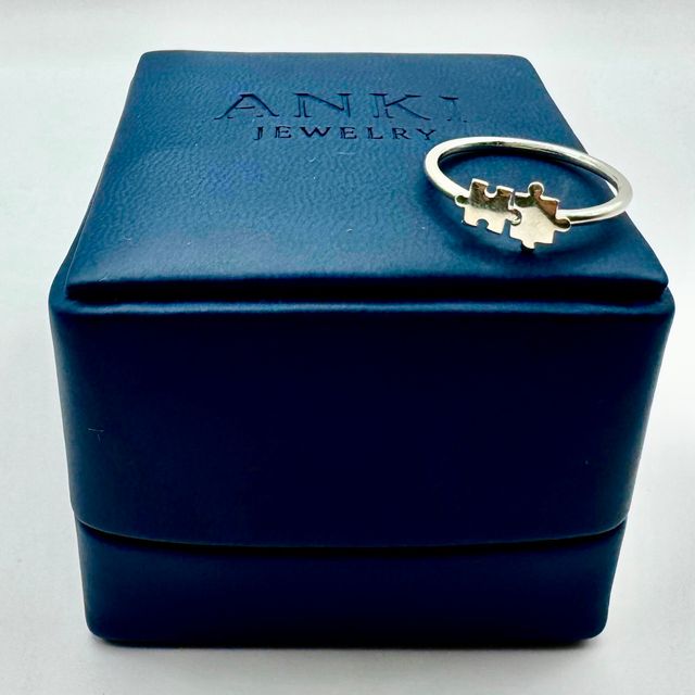 Anillo en plata 925, con rompecabezas grabado, un diseño moderno y simbólico que representa conexión y unión.
