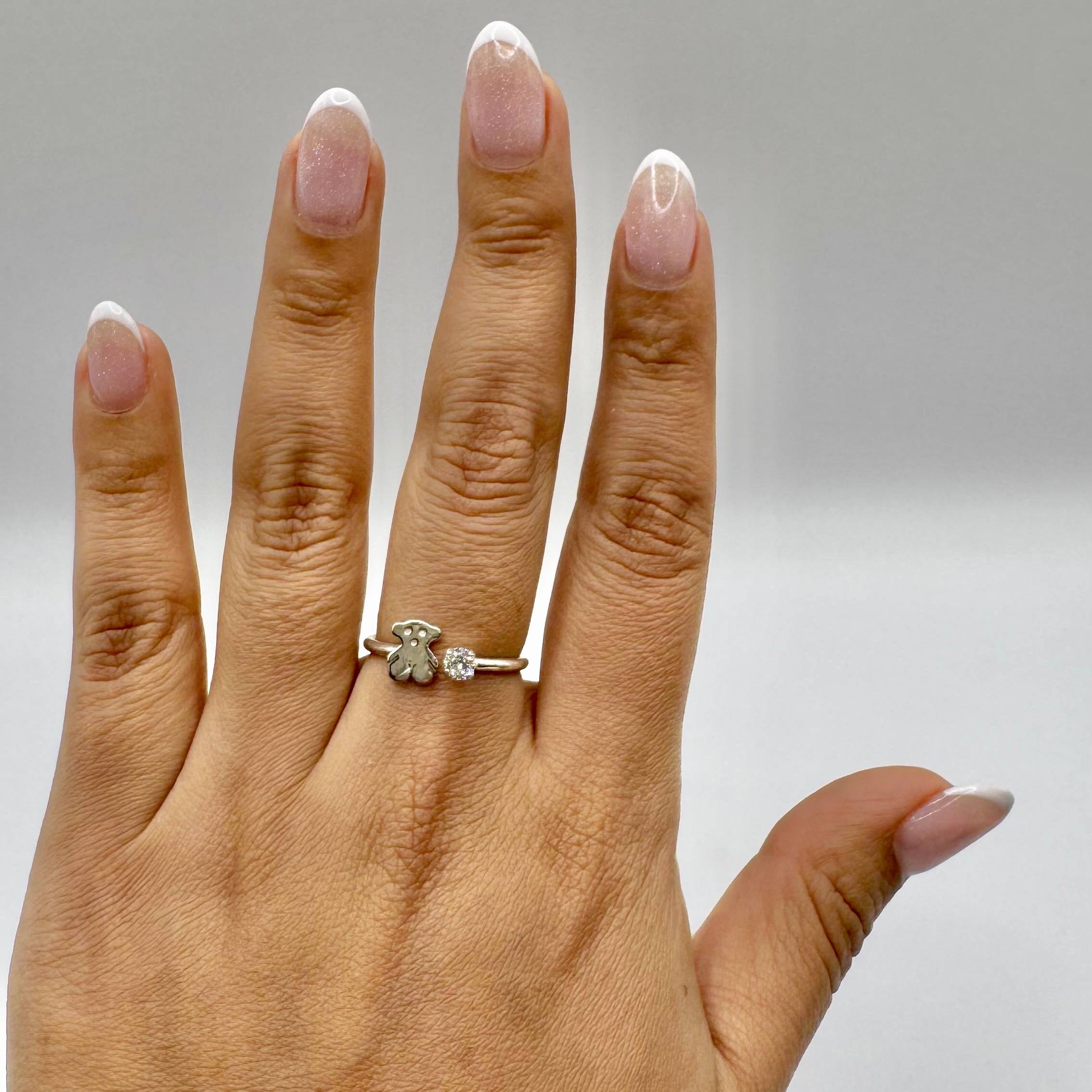 Anillo en plata 925, decorado con un icónico osito Tous y un circon central que aporta un toque de brillo y ternura.