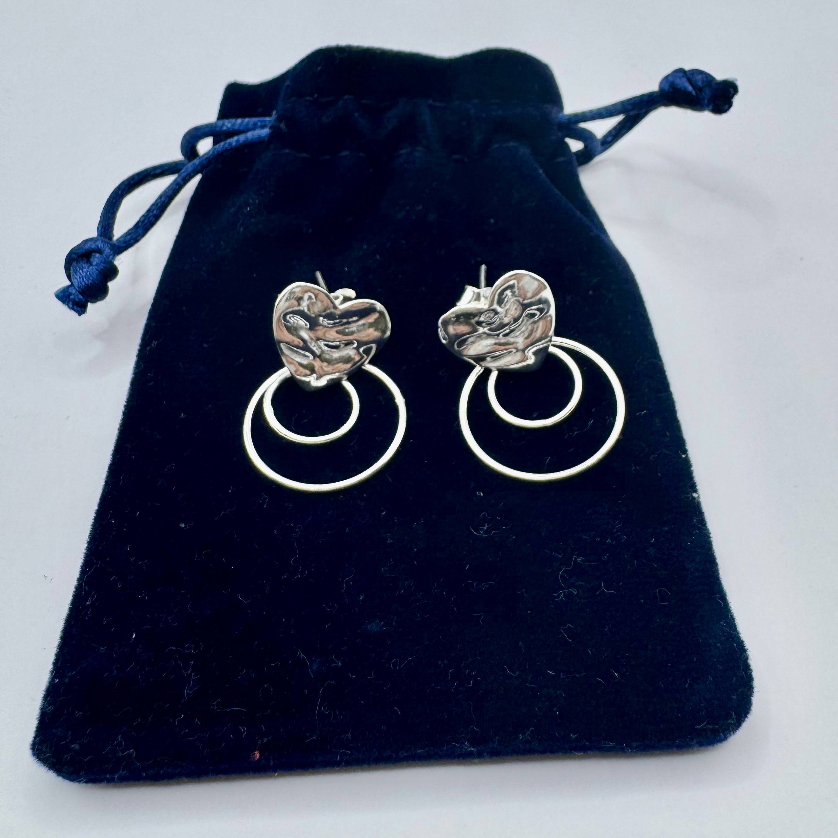 Plata 950 con diseño colgante de corazón y círculos, simbolizando amor y armonía.