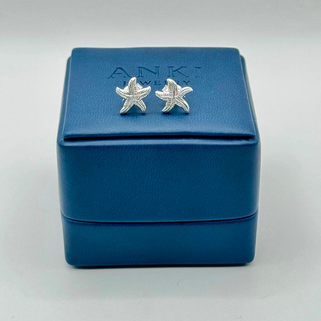Aretes estrella de mar en plata 950, de diseño pequeño y delicado, ideales para un toque sutil de frescura marina.