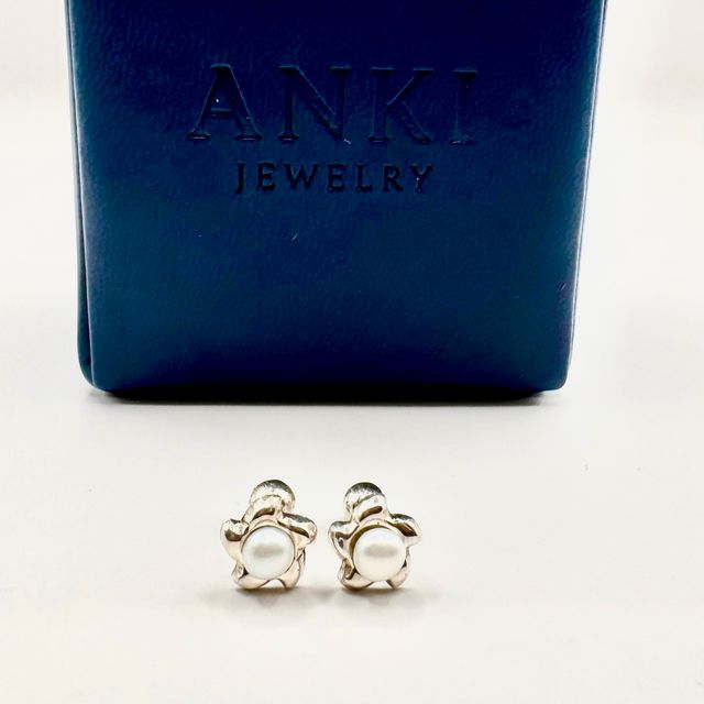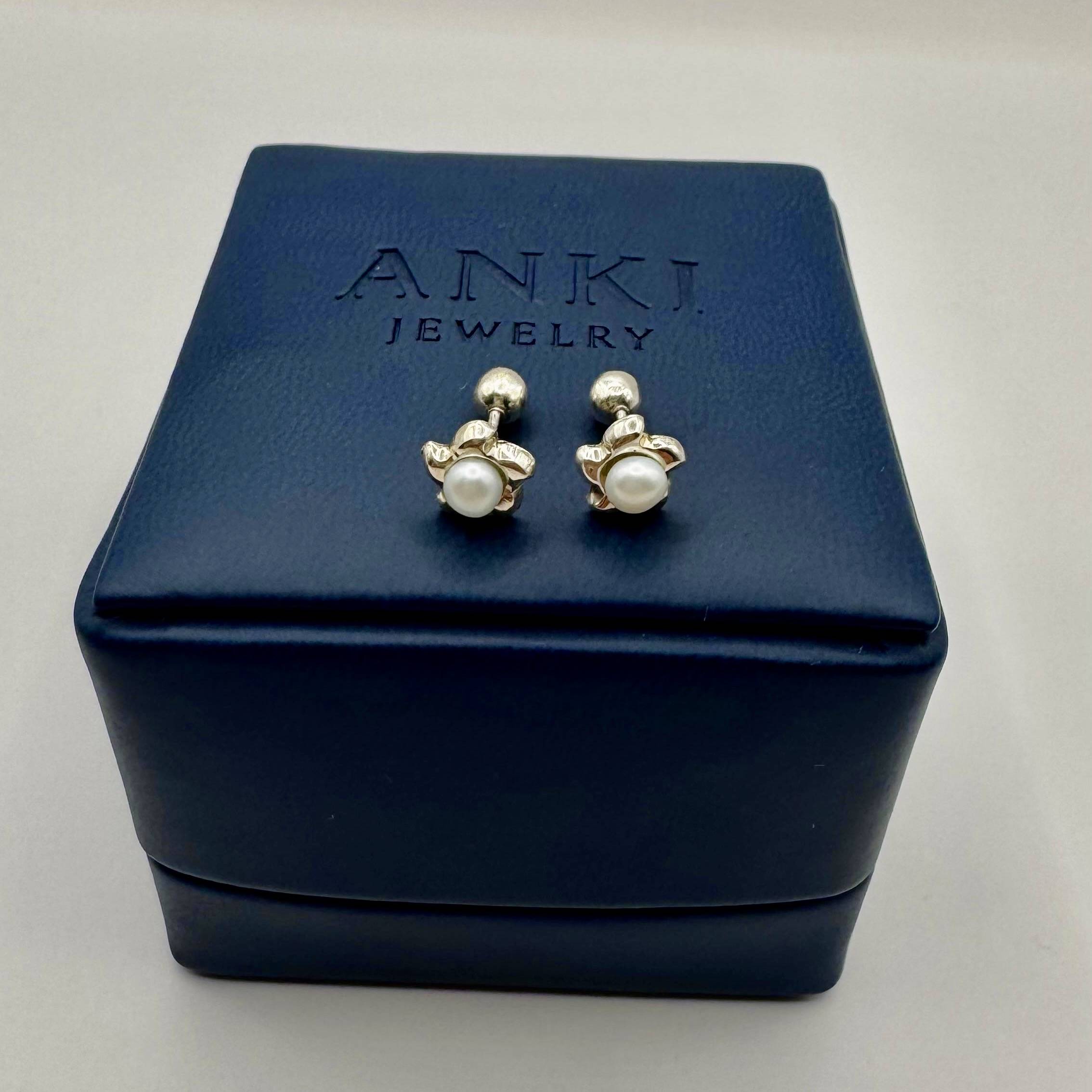 Aretes flor con perla en plata 925, con bolita ajustable posterior. Un diseño sofisticado y atemporal que realza la feminidad con delicadeza.