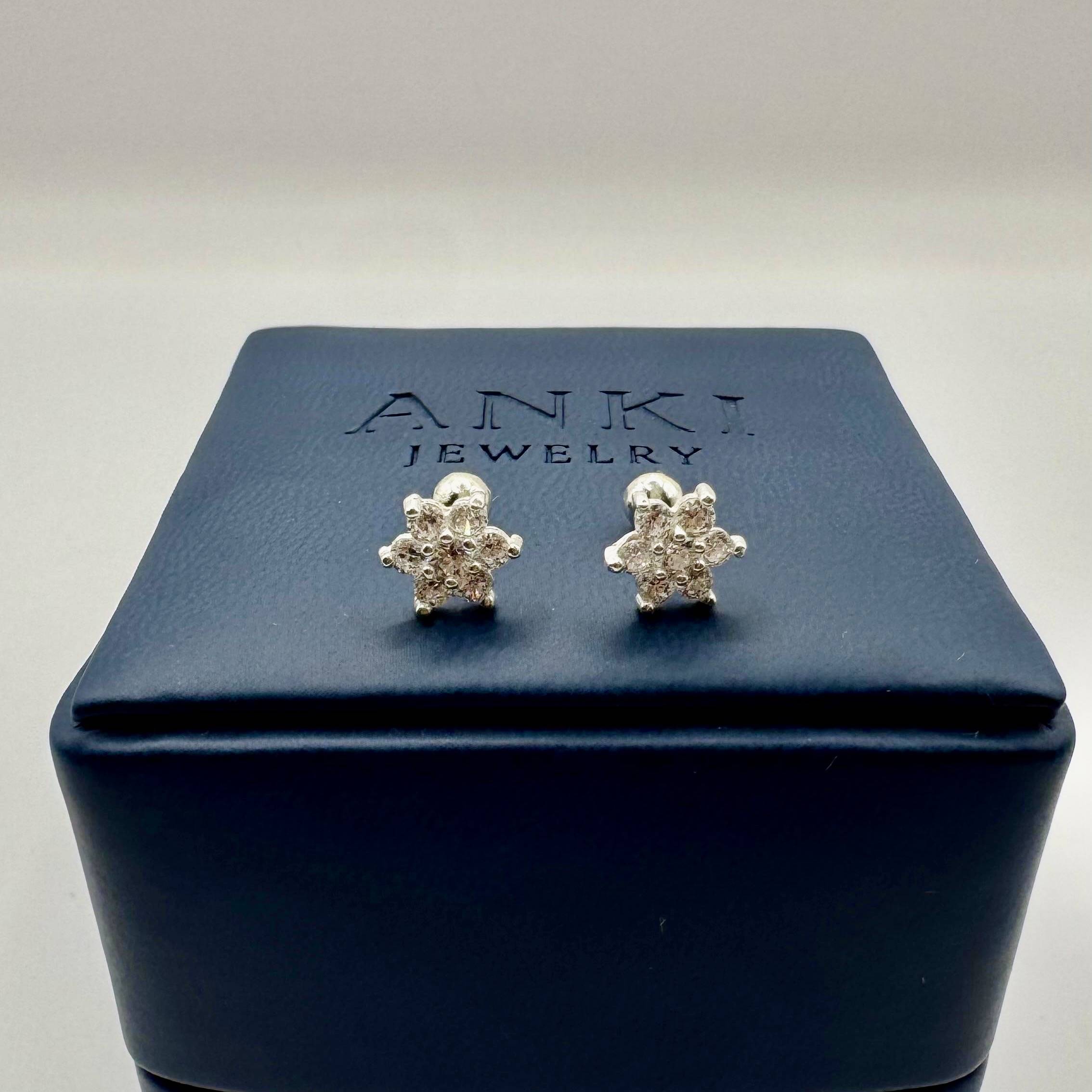 Aretes flor de 6 puntas en plata 925, con acabado brillante y bolita ajustable posterior.