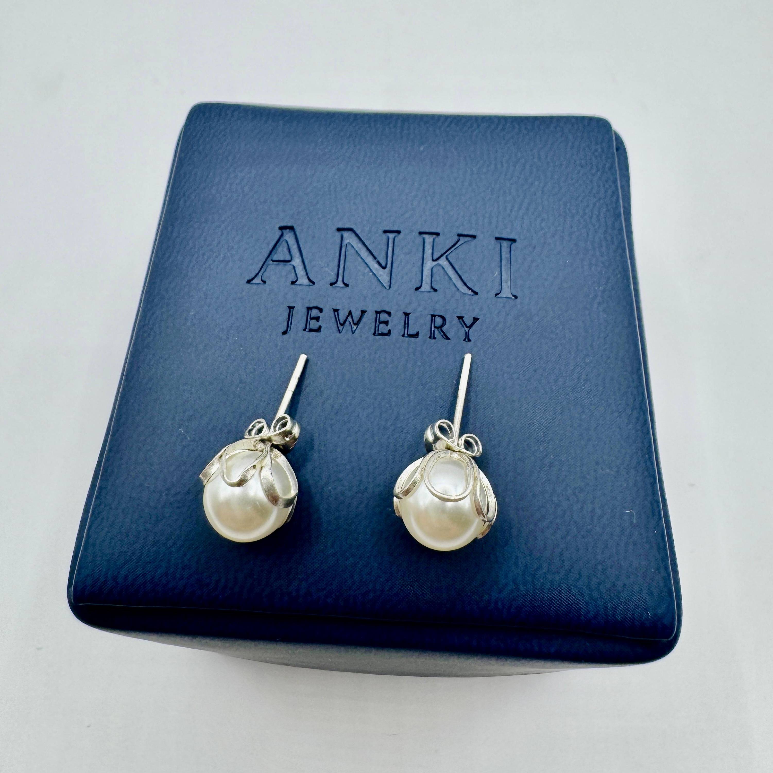 Plata 950 con diseño floral y esfera blanca central que ilumina el rostro con elegancia.