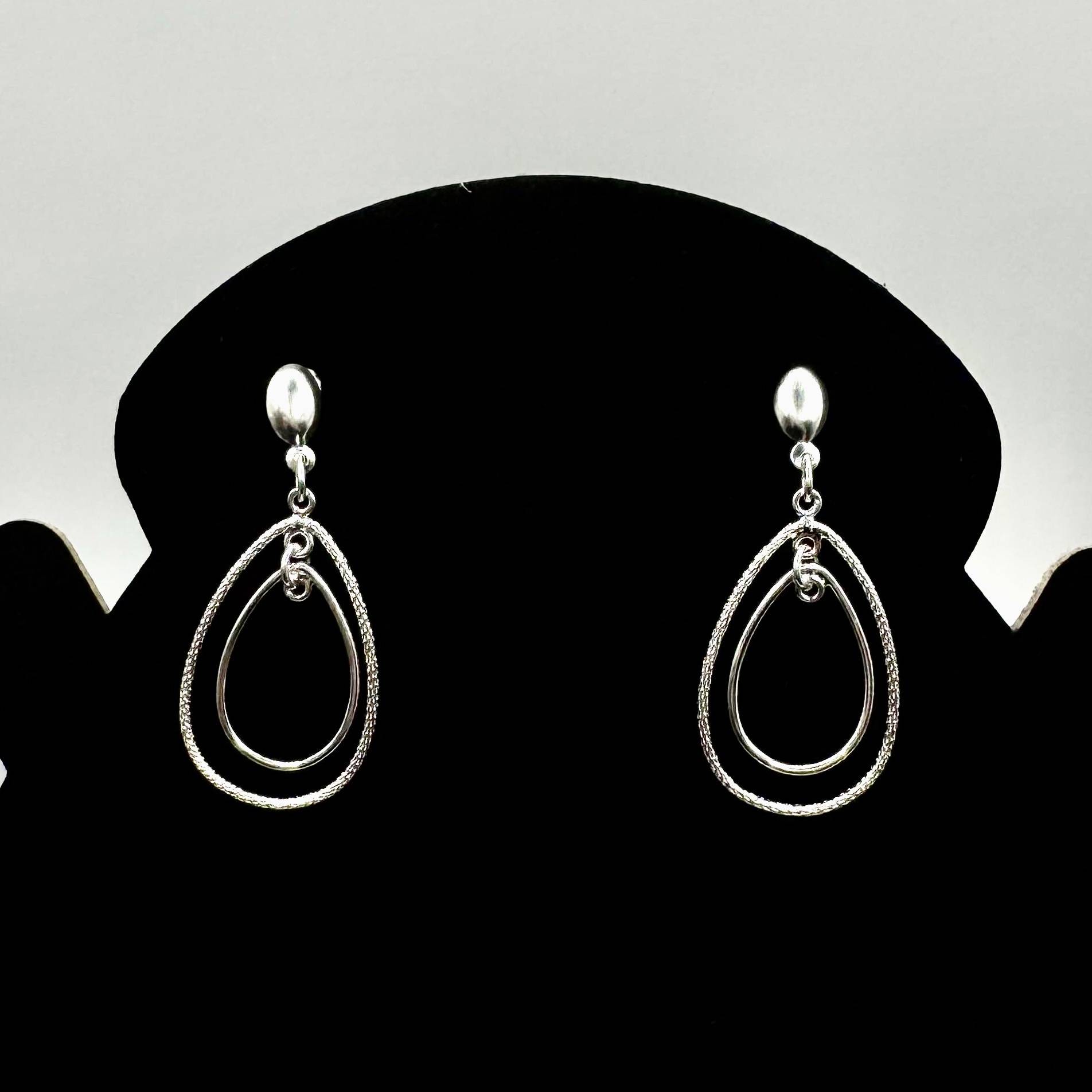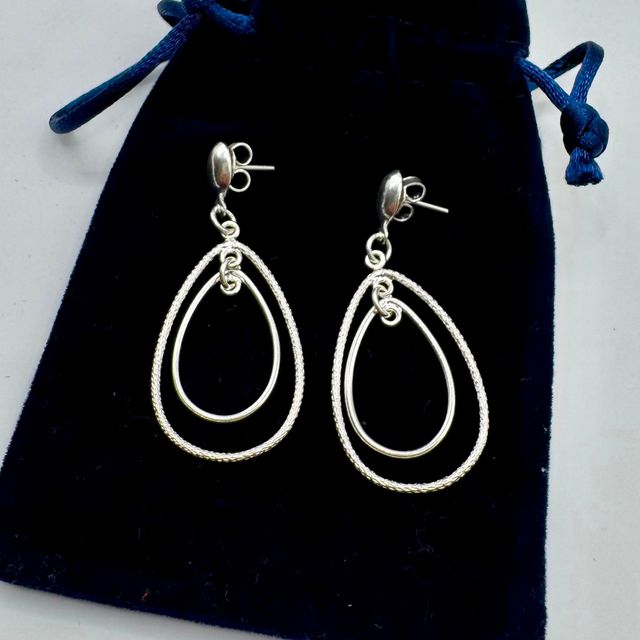 Aretes colgantes en plata 950, de doble gota, una pieza que combina sofisticación y movimiento en perfecta armonía.