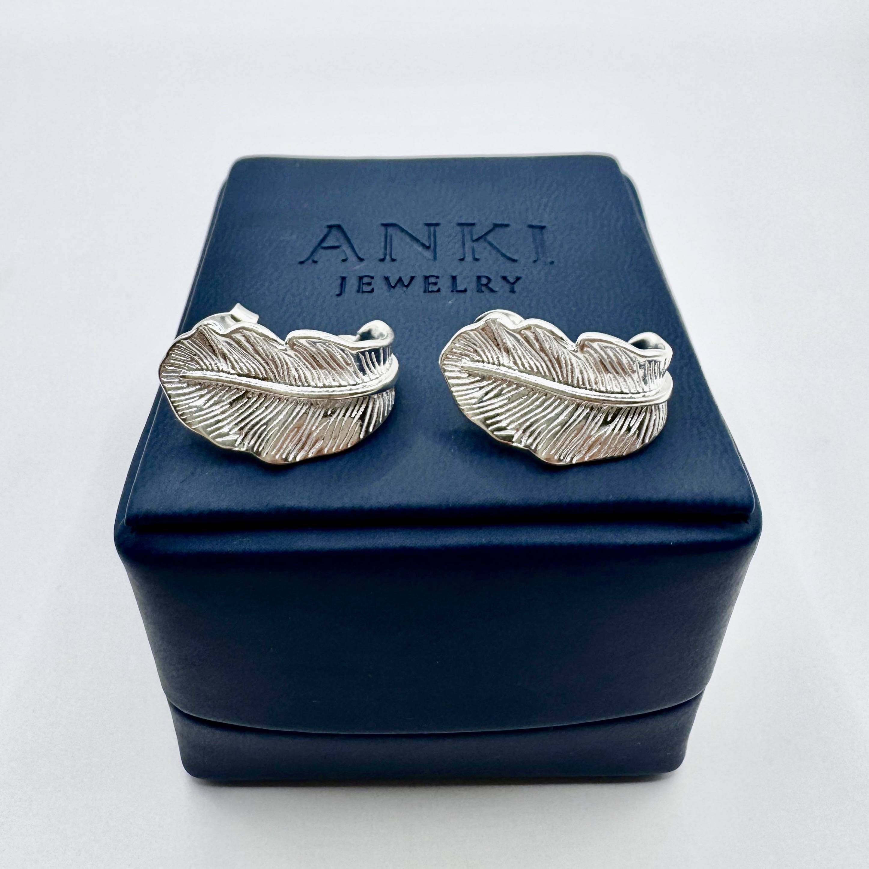 Aretes en plata 950 con forma de pluma detallada, símbolo de libertad, suavidad y estilo natural.