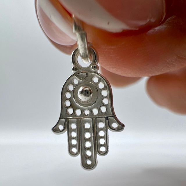 Símbolo de protección y buena fortuna, trabajado en plata 950 con delicados detalles.