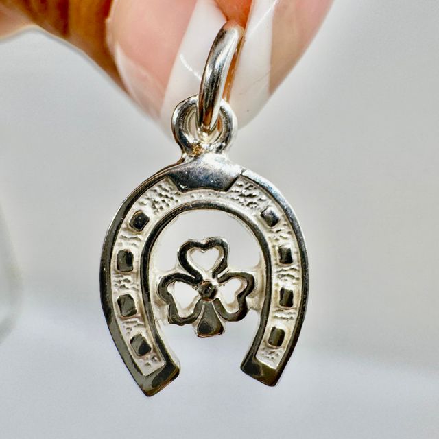 Un símbolo que une fortuna y protección: la herradura y el trébol, en una pieza encantadora y llena de intención. Ver más detalles