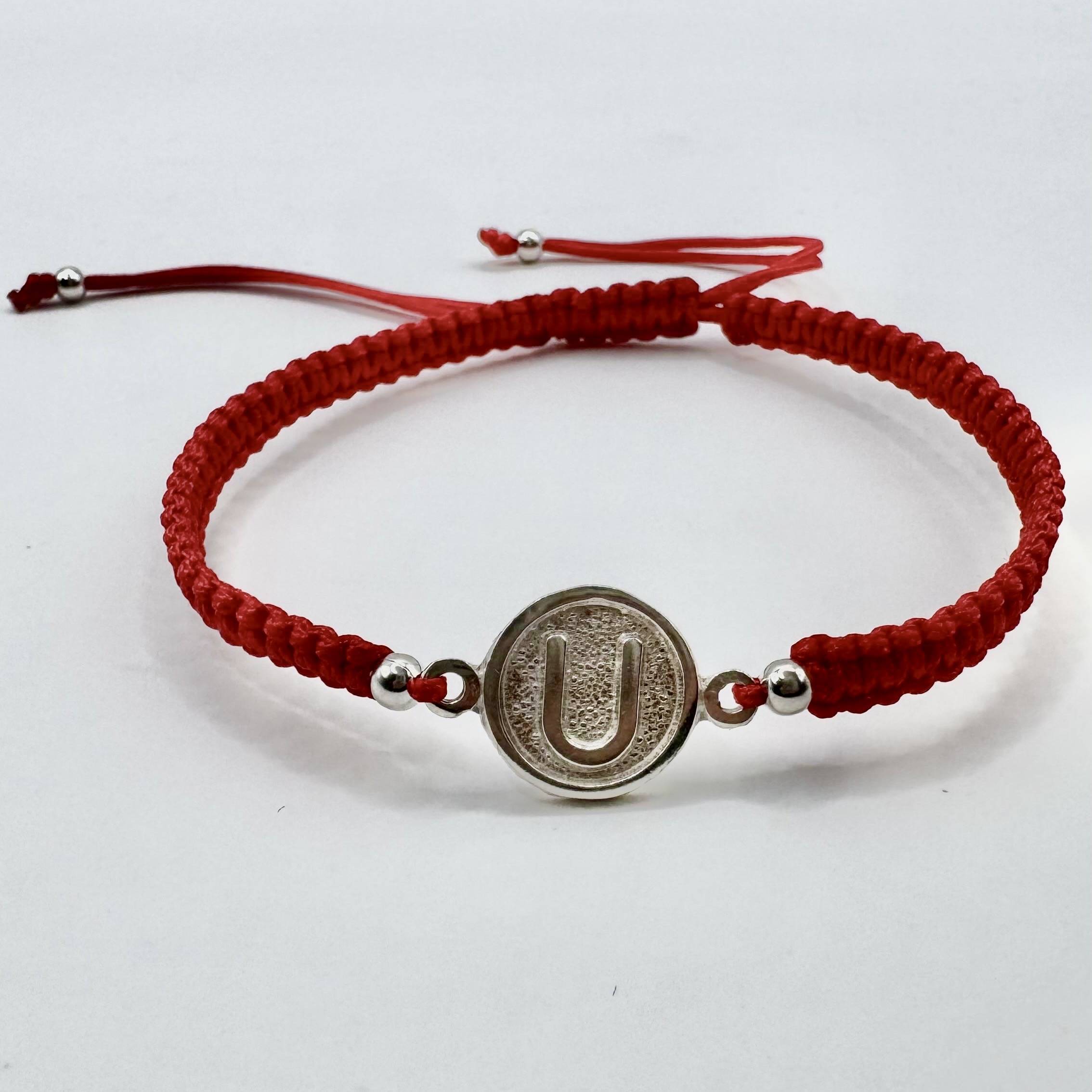 Pulsera de hilo con dije en plata 950 inspirado en el escudo de Universitario de Deportes. Ajustable y de edición especial para verdaderos hinchas cremas.