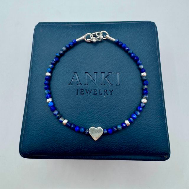 Un corazón que se une a la profundidad del lapislázuli, piedra asociada a la sabiduría y la verdad interior. Una pulsera delicada que combina elegancia, energía y significado.