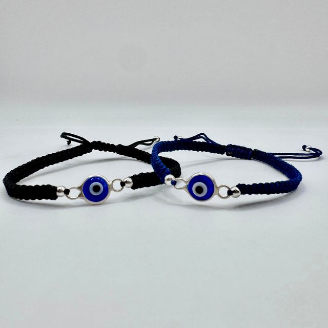 Pulsera de hilo regulable con dije de ojo turco de Plata 950. Diseño minimalista, resistente y perfecto para uso diario.