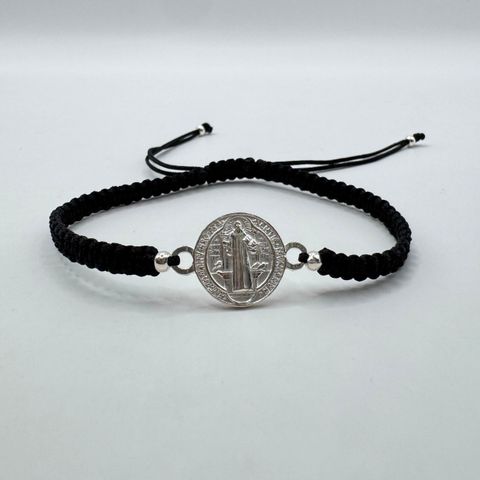 Pulsera de hilo ajustable Dije de San Benito en plata 950. Diseño simbólico y ligero · Ideal para uso diario.