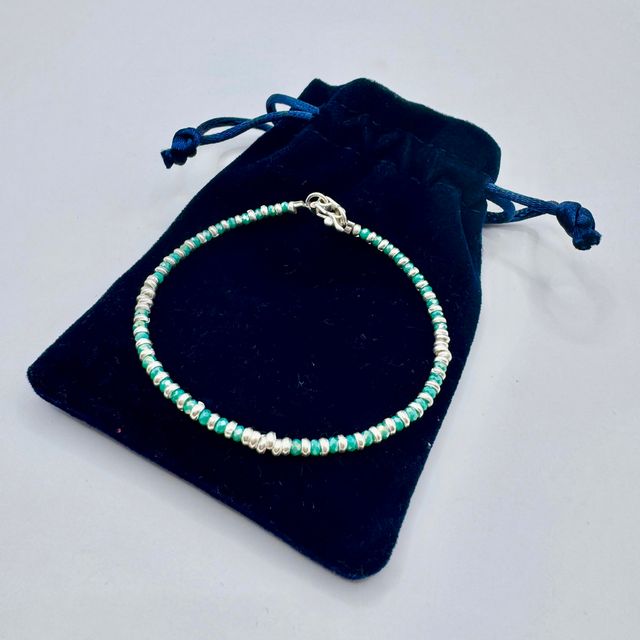 Delicada pulsera de plata 950 con piedra verde suave que transmite calma, frescura y armonía.