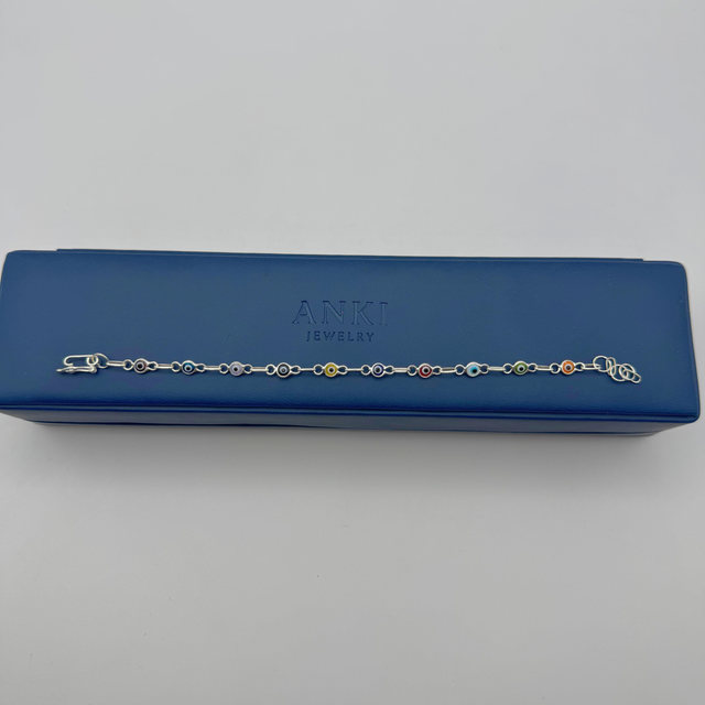Delicada cadena con mini ojos turcos en tonos vibrantes. Una pieza sutil que protege tu energía mientras eleva tu estilo. Ver más detalles