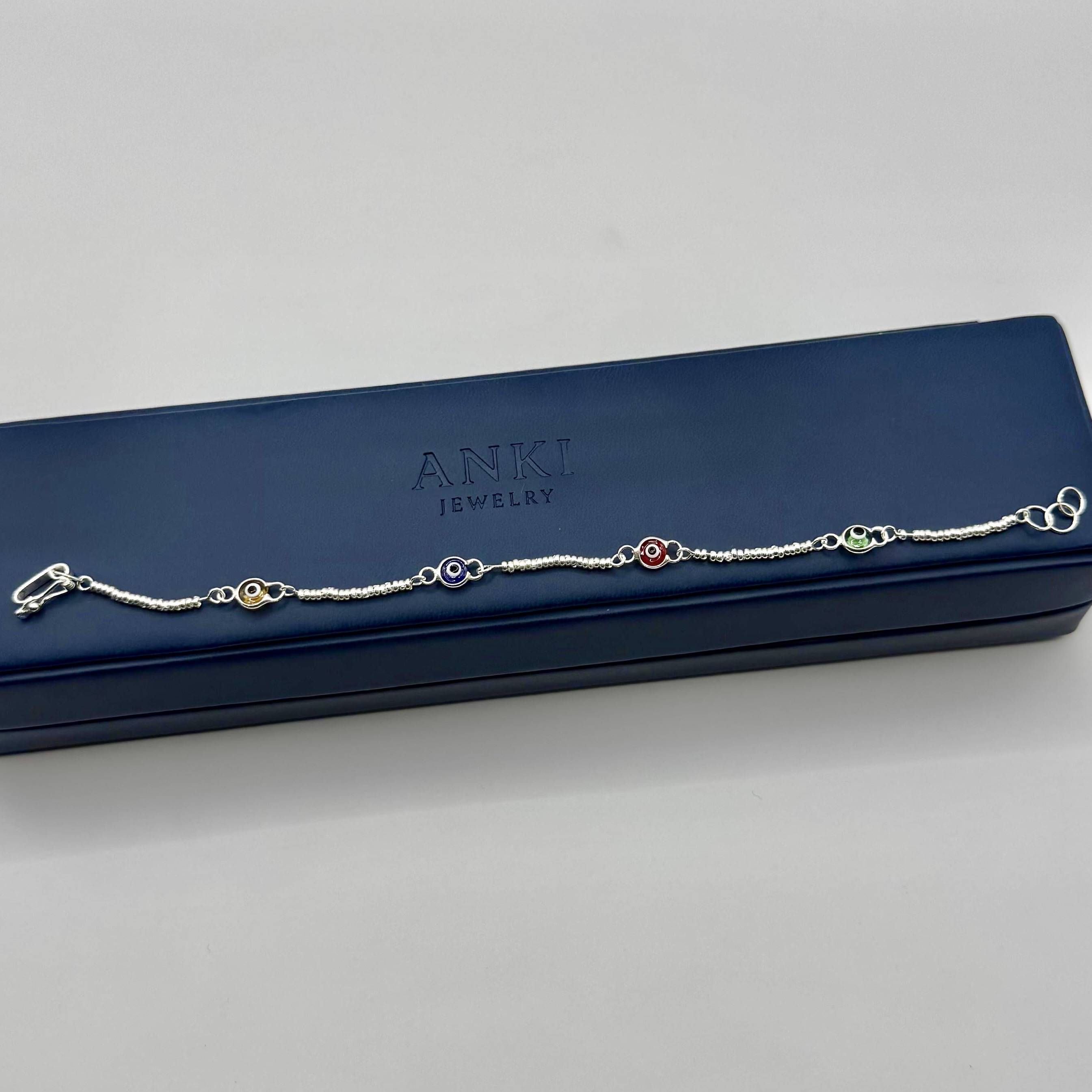 Pulsera en plata 950 con ojos turcos multicolor, símbolo de protección y energía positiva.