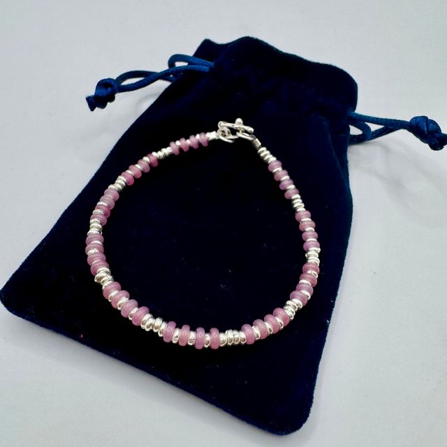 Plata 950 con piedra rosada pastel, delicada, romántica y femenina.