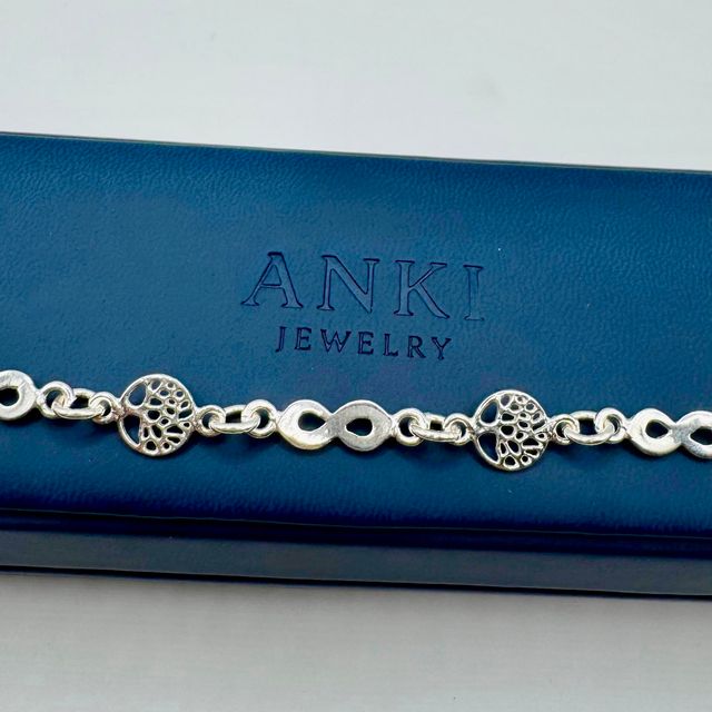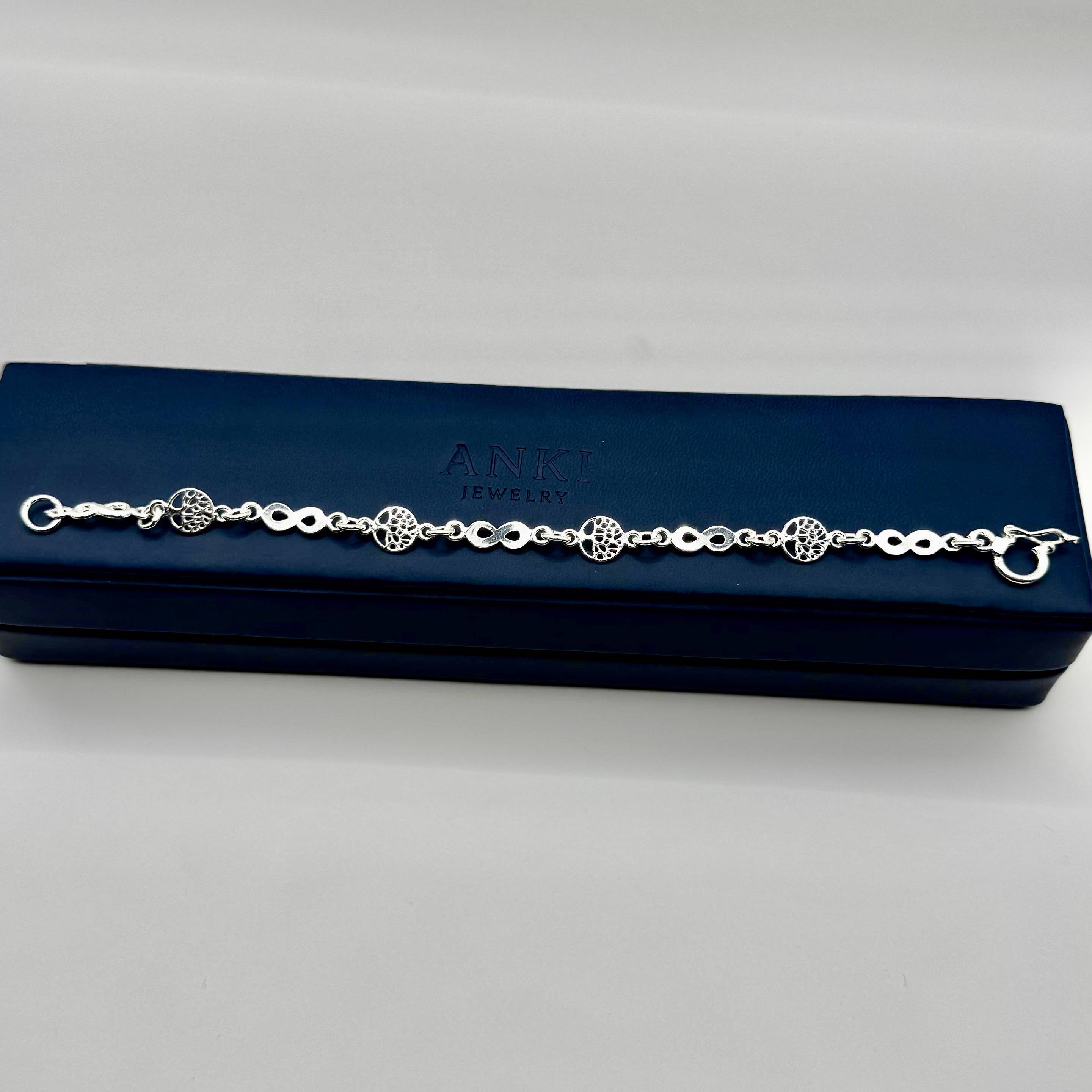 Pulsera en plata 950 con diseño de árbol de la vida e infinitos, símbolo de conexión, crecimiento y eternidad.