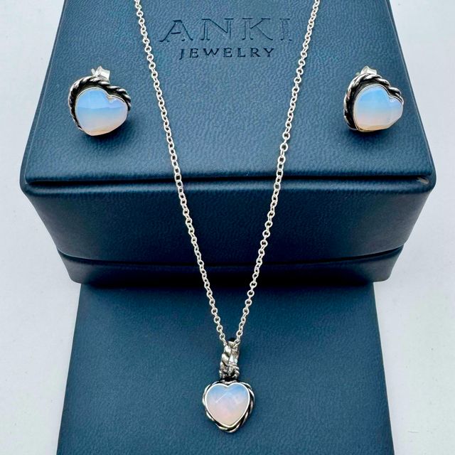 La suavidad mística de la piedra luna en forma de corazón. Ver más detalles